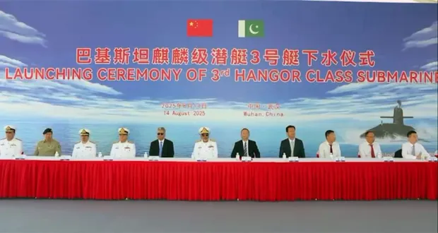 Beijing: The launching ceremony of Pakistan Navy’s third Hangor class Submarine “PNS-M Mangro” was held in China.