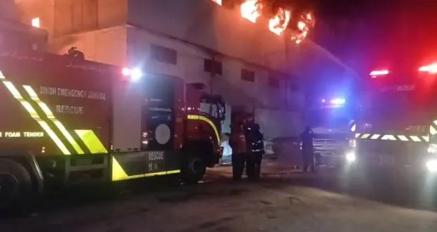 The blaze has severely damaged a significant section of the factory’s ground floor and has spread to an adjacent warehouse. Authorities have also indicated that the fire is now approaching a nearby industrial unit. To prevent further damage, workers inside that facility have been evacuated as a precaution, while firefighting teams are actively spraying water to contain the flames.