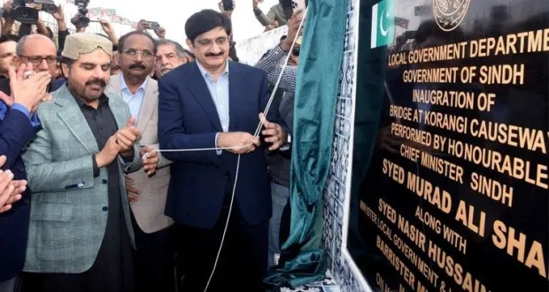 KARACHI: Sindh Chief Minister Murad Ali Shah inaugurated the Korangi Causeway Bridge on Monday, the event was attended by Local Government Minister Nasir Hussain Shah, Labor Minister Saeed Ghani, the Mayor of Karachi, and other senior officials, along with numerous members of the business community.